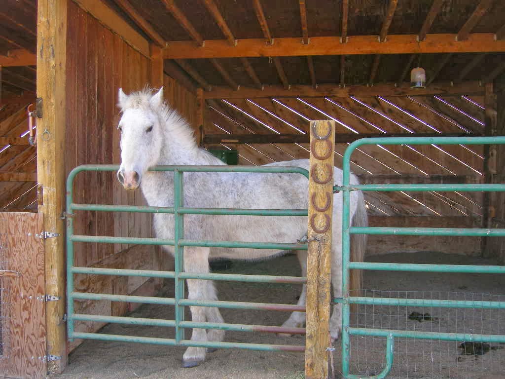 He also doesn't like enclosed spaces. He's been in the pens, mostly by himself, half a dozen times over the last three weeks or so. But getting him into the stall is a huge undertaking; he's claustrophobic, and the walls and ceiling terrify him.