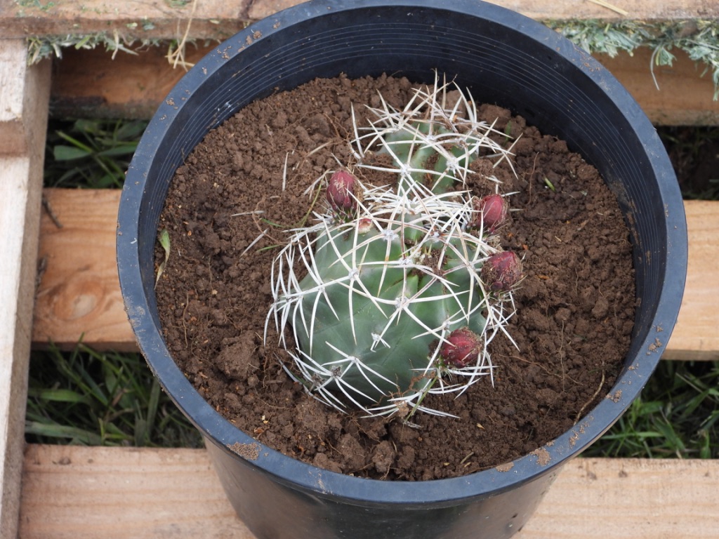Raven's cactus, the one Mark gave us for him yesterday: a little spiky, like Raven himself, but with beautiful red flowers at heart.